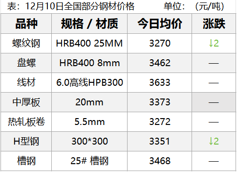 12月10日,钢材现货市场以稳为主,期货市场主要品种主力以涨为主,其中螺纹、热卷涨1%左右,铁矿涨1.85%,焦炭涨0.36%,焦煤跌1.29%。今日部分钢厂对焦炭开启第二轮提降,当前钢市处于供需双弱格局,凌晨美联储将发布利率决议及声明,钢价......