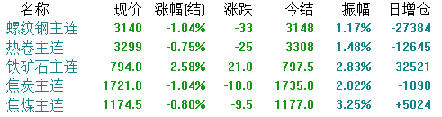 期货方面,截止收盘,各品种主力全部下跌。