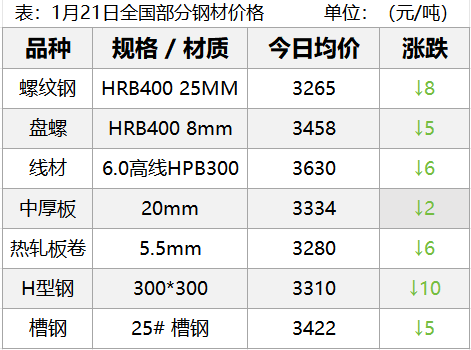 1月21日,钢材现货市场小幅下跌,期货市场主要品种主力全部下跌,其中螺纹、热卷、铁矿跌0.5%左右,焦炭跌0.59%,焦煤跌1.83%。今日市场宏观支撑有限,市场情绪偏弱,近日钢材期货价格重心明显下移,叠加今日多地启动重污染天气应急响应,期价逐步企稳回升,明日钢价......
