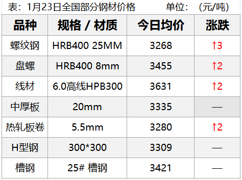 3、石横:螺纹钢、线材和盘螺价格上调20元/吨;