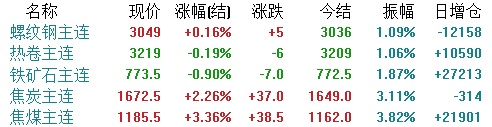 期货方面,截止收盘,各品种主力以涨为主。