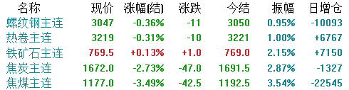 期货方面,截止收盘,各品种主力以跌为主。
