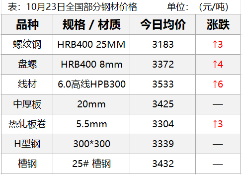 10月23日,钢材现货市场小幅上涨,期货市场主要品种主力全部上涨,其中螺纹、热卷、铁矿涨1%左右,焦炭涨超4%左右,焦煤涨超5%左右。钢材减产降库,不过累积的库存需要一定时间消化,房地产数据疲弱打击市场信心,出口也遇到新的挑战,价格上涨压力仍在,明日钢价......