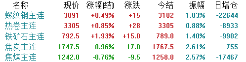 期货方面,截止收盘,各品种主力以涨为主。