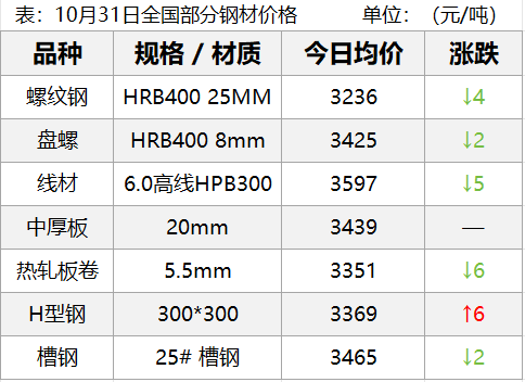 10月31日,钢材现货市场小幅下跌,期货市场主要品种主力全部下跌,其中螺纹、热卷、铁矿、双焦均跌1%左右。昨日中美经贸磋商达成共识,宏观预期暂时落地,商品整体情绪降温,加上国内高库存压制与需求疲软共振,下周钢价......