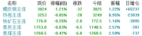 期货方面,截止收盘,各品种主力全部下跌。