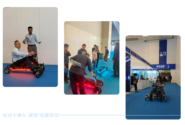 开展首日,六六仓低空科技的电动卡通车,成了展馆里的流量、性能和颜值担当。大家被它的“特殊功能”吸引而来,纷纷上来体验。