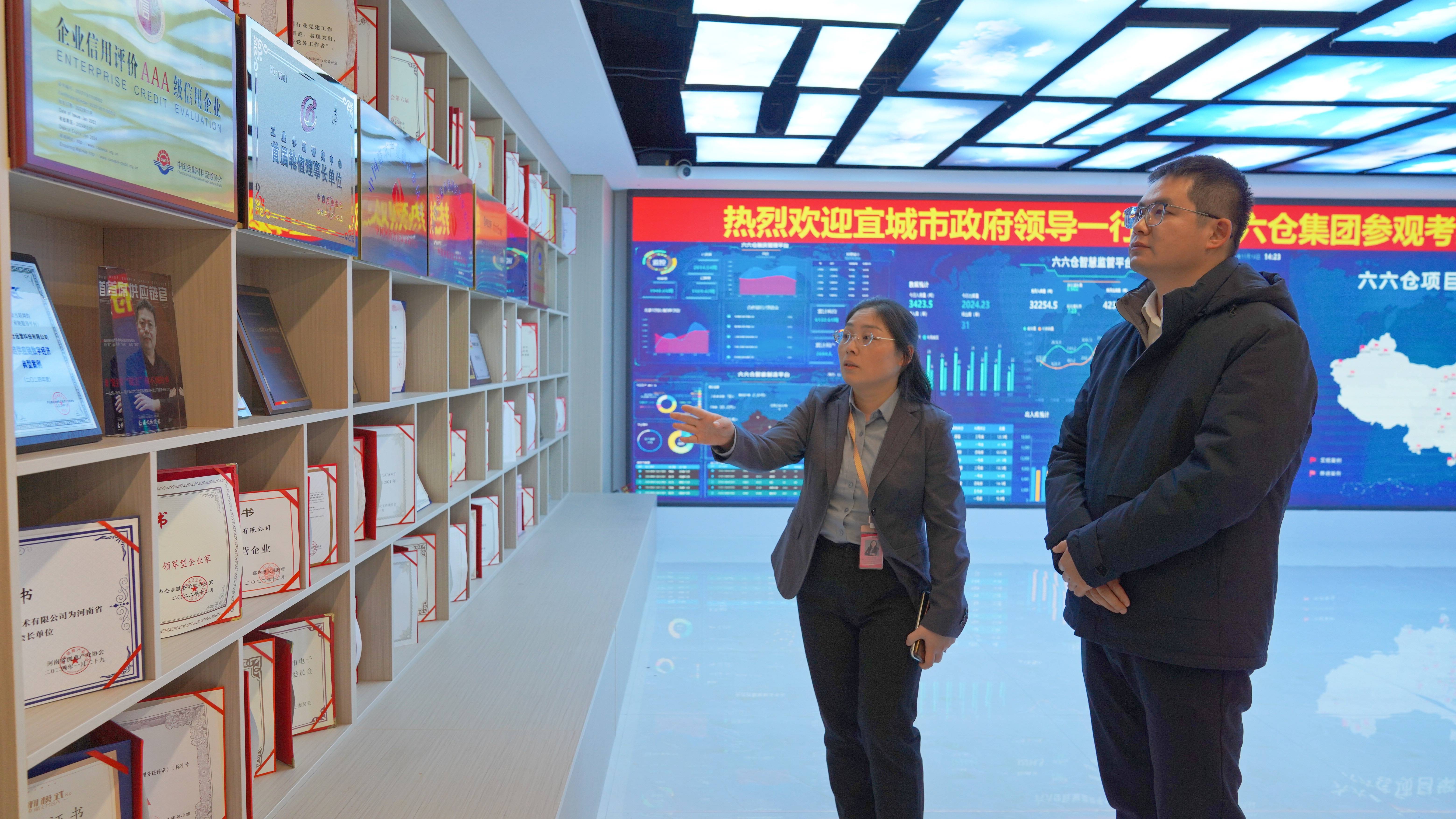 在张蓓总经理的陪同下,张逸副市长一行首先参观了六六仓集团郑州运营总部,详细了解了集团的发展历程、业务布局、荣誉成果以及未来战略规划。并对六六仓在大宗商品全产业链数字化建设中所取得的创新实践与技术成果给予了高度评价,认为其发展模式具有行业前瞻性和示范意义。