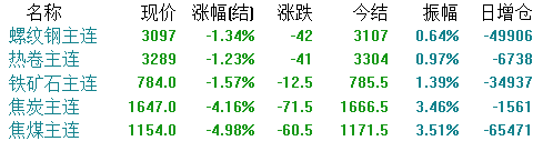 期货方面,截止收盘,各品种主力全部下跌。