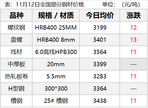 11月12日,钢材现货市场小幅上涨,期货市场主要品种主力涨跌不一,其中螺纹、热卷涨0.2%左右,铁矿涨1.4%左右,双焦跌2%左右。西芒杜铁矿项目投产,影响全球铁矿供应,国内近期高炉生产持续走弱,铁水产量继续回落,整体供应收紧,需求方面,建材需求进入淡季初期,终端需求环比增速放缓,明日钢价......