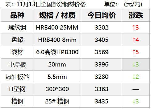 11月13日,钢材现货市场涨跌互现,期货市场主要品种主力涨跌不一,其中螺纹、铁矿涨0.3%左右、热卷跌0.12%、双焦跌0.3%左右。本周五大钢材品种库存继续环降,为6周内最低,表需回落,明日钢价......