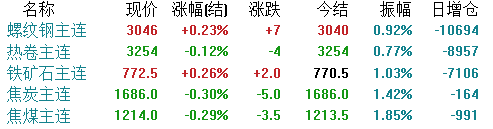 今日钢材现货市场涨跌互现,宏观方面,国内库存连降但同比高增、表需低迷压制钢价,保障房建设提供需求支撑;国际上,美政府停摆结束利好基建用钢需求,但两党博弈存隐忧;原燃料方面,近期煤焦市场偏弱运行,焦企第四轮提涨遇阻,铁矿延续偏强运行,成本对钢价仍有支撑;综合来看,国内处于政策真空期,短期国内进行大规模经济刺激的预期降温,五大钢材品种产量及表观需求均下降,疲弱的房地产数据及天气转凉影响下,市场情绪整体偏弱,预计明日钢价持稳个跌,幅度0-10。